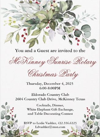 Rotary Christmas Party: December 4th